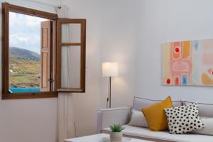 Seaview comfy flat in Andros - walk to beach is an apartment located in Ándros, just 80 metres from Neimporio Beach and within walking distance of Paraporti Beach. It offers a terrace and a balcony with views of the surrounding area.